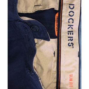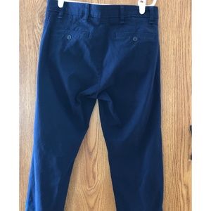 I went shopping for nice pants with my mom ONCE and I bought a small pair by accident. From that incident, I have learned. These pants are comfy and classy, you could wear them instead of jeans to switch it up for a day. Even with a t-shirt, these pants would work, probably. They are very indeed slim fit. I don't know what else to say. They're navy blue, 30 in the waist, and 32 in the length.