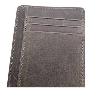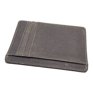 Slim Gray Leather Card Holder With ID Window & Multiple Card Slots