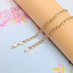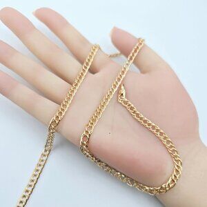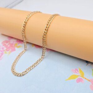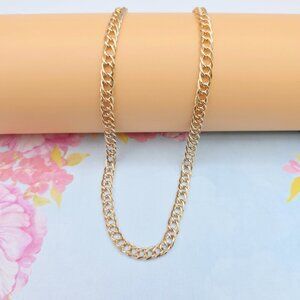 A lightweight and stylish rose gold chain with a classic curb design, made from high-quality brass and finished in polished gold plating.