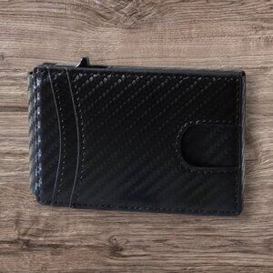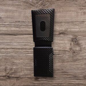 Slim Wallet. Side lever to push up credit cards for easy access. The black design offers a modern and stylish look. Durable and lightweight, it's perfect for everyday use.