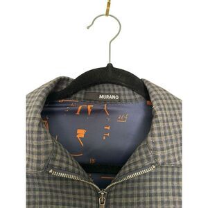 The Slim Fit Murano Plaid Jacket in Black and Blue is a stylish and classy addition to any wardrobe. Made of polyester with a plaid pattern, this slim fit jacket features a full zip closure and is perfect for various occasions such as travel, casual outings, formal events, or business meetings. The jacket is designed with a sleek bomber style and is available in size S, making it a versatile piece for the fashion-conscious man. The Murano brand brings a touch of sophistication, and the slim fit and plaid design elements add a modern and refined touch to the overall look.