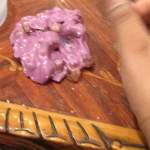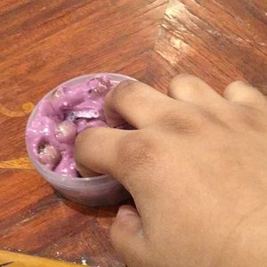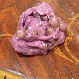 This slime is called grape cocktail so the beads are the crushed ice the foam beads is the salt and the purple color is grape. This slime is made by me homemade even thought it says SLIMYGLOOP I only got the container and it is scented as a little bit of grape so have fun with it it was my favorite slime I made