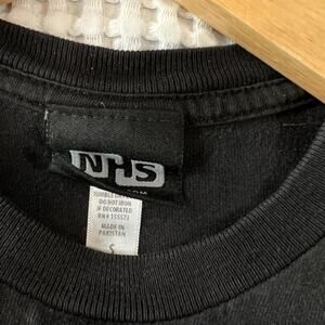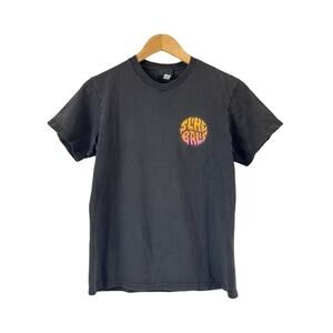 Black tshirt with graphic for band on the front and back.