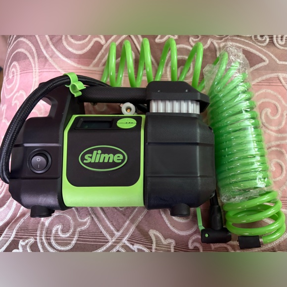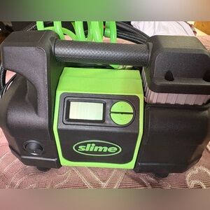 Efficiently inflate your tires with the Slime Portable Tire Inflator. Featuring a sleek green and black design, this inflator is perfect for on-the-go use. Trust in Slime's quality for reliable performance.