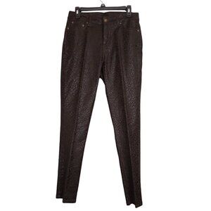 Slimsation | Animal Print 5 Pocket Stretch Jean Chocolate Black | Size 8