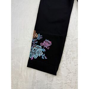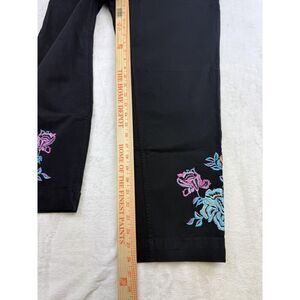 Slim-sation Pants Womens 12 Black Embroidered Floral Stretch Pull On Cropped