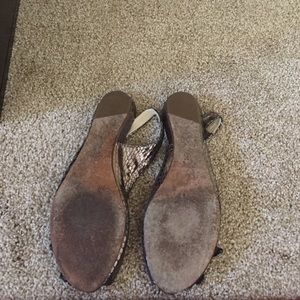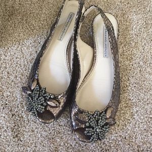 Vera Wang snake print silver metallic sandals with flower gemstone accents