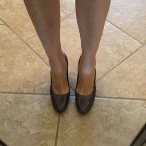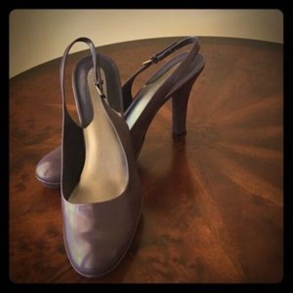 Dusty plum leather. Sightly rounded toe. 4 1/4 inch heel. Hardly worn