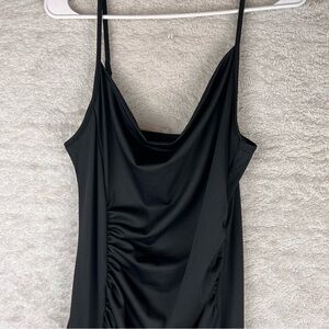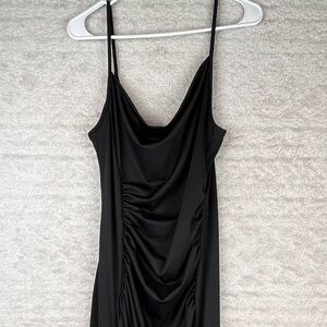 Slinky Black Ruched Dress Cowl Neck Maxi Medium Adjustable Spaghetti Straps