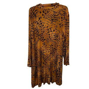 Slinky Brand Cardigan Womens Large Brown Animal Print Open Front Duster Long