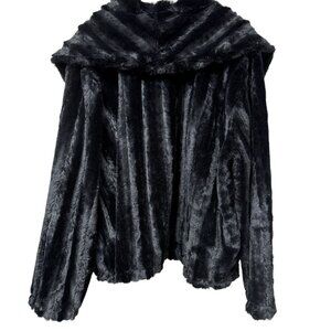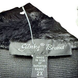 Slinky Brand Faux Fur Jacket Plus Size 2X Black Evening Open Front Womens Coat
