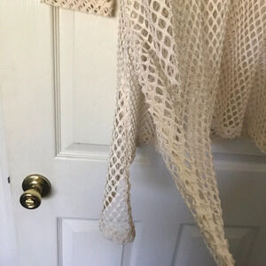 Beige mesh shirt or coverup is a solid creamy beige color. not fading to darker towards the bottom as pictured. it's in excellent condition and ready to top your tank top or swimsuit!