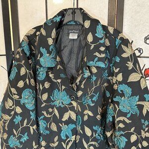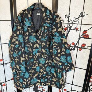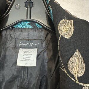 Slinky Brand Size 2x Black Gold Blue Floral Embroidered Long Jacket Coat