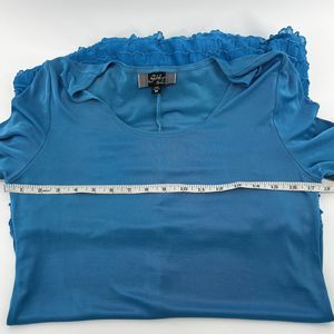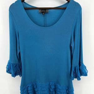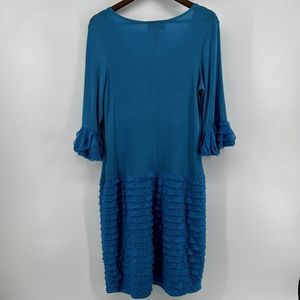 Slinky Brand Sz M Turquoise Blue Tiered Ruffled Slinky Knit Dress 3/4 Sleeve.