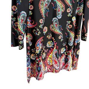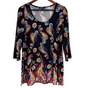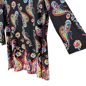 Slinky Brand Sz Medium Super Stretchy Paisley Print Blouse Shirt Top Tropical