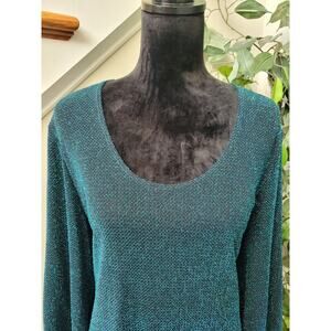 Slinky Brand Women's Blue Polyester Round Neck Long Sleeve Pullover Sweater 1X.