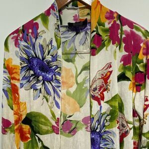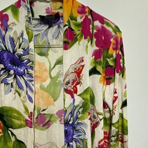 Slinky Brand Women's Multicolor Floral High Low Open Front Cardigan Medium