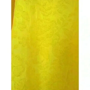 This beautiful Slinky Brand open cardigan features a textured yellow rose design that is perfect for any occasion. The 3/4 sleeves and collared neckline make it a versatile addition to your wardrobe. Made with a blend of polyester and spandex, it is both comfortable and durable.
