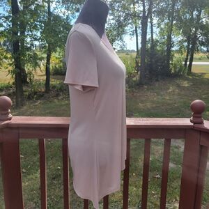 Elevate your wardrobe with this neutral beige Slinky Brand tunic top in women’s size small. Designed with a flattering scoop neckline and short sleeves, this lightweight top has the perfect amount of stretch and length to wear with leggings, trousers, or a pencil skirt. Great for layering under blazers or cardigans!
