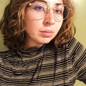 90s + 00s aesthetic slinky tee. Long short sleeve with mock neck. So cute with relaxed jeans or overalls. Dress it up or down - theres even a little bit of bronze tensile sparkle. Model wears it a little loose.