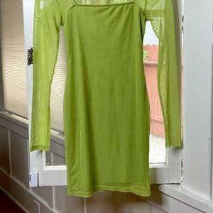 Clothing: Slinky Lime Neon Green Mesh Long Sleeve Mini Dress