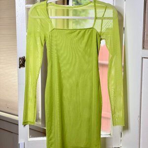 Slinky Lime Neon Green Mesh Long Sleeve Mini Dress