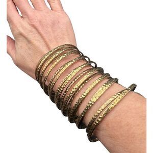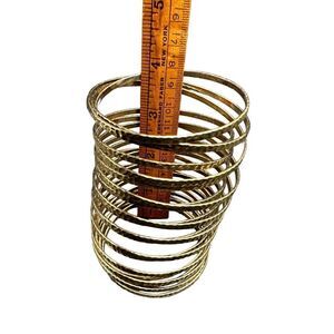 Slinky style hammered coil bangle bracelet one piece gold tone