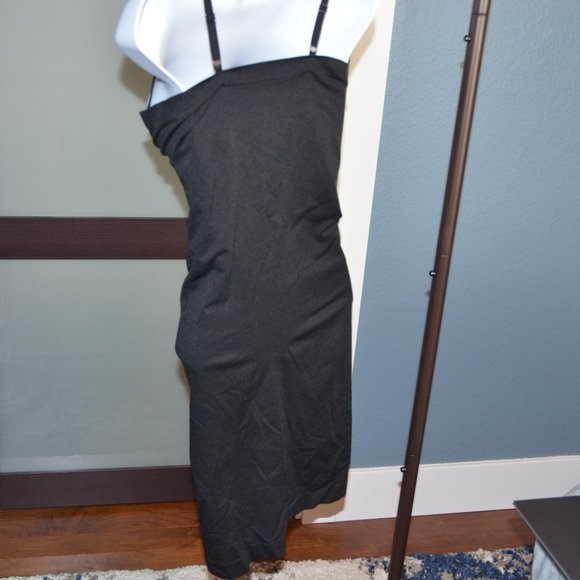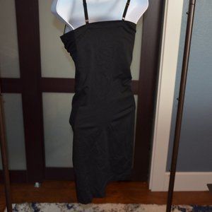 Black, under the dress, under breast slimming slip.