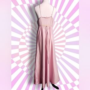 Mauve night gown slip dress with crochet details and sheer upper back.