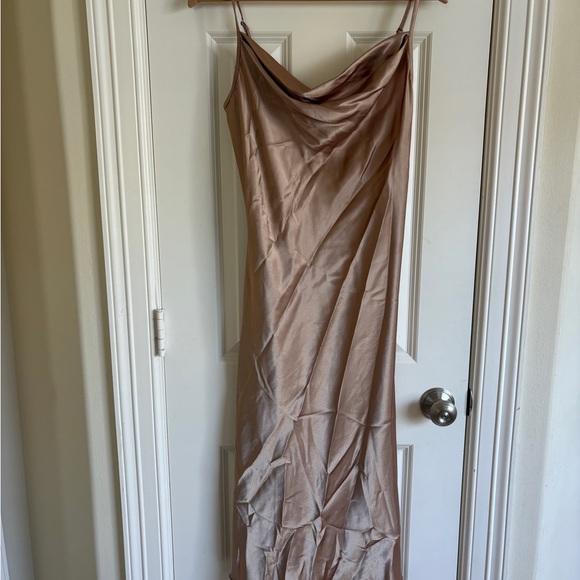Stylish champagne gold slip dress with a sleek design. Perfect for any occasion. Size medium runs smalll