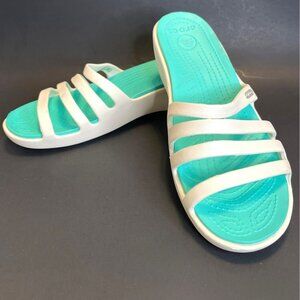 Slip On Sandals Straps Crocs White Green Water Shoes Slide Wedge Heel Size 10