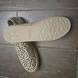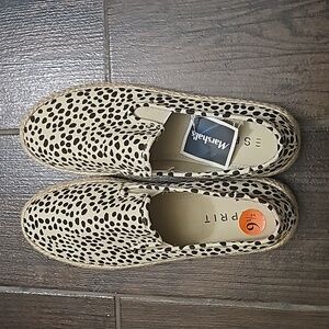 Brand new leopard print slip ons. Has a braided upper sole made of rope type material. Rounded toe for comfort.
