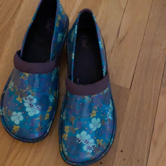 Fairly new slip resistant flowered clogs size 7 wore one time but they are too big. Expensive shoes for work or play they are skip resistant and are very comfortable