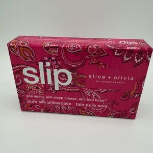 Luxurious silk pillowcase by Slip and Alice + Olivia. Soft and smooth for a restful sleep. Reduces aging and creases.