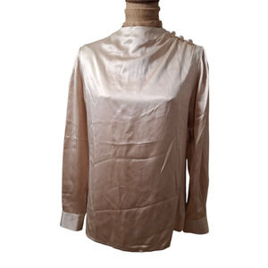 Slipintosoft Mulberry Silk Champagne Blouse with Gold Buttons Elegant 8/10