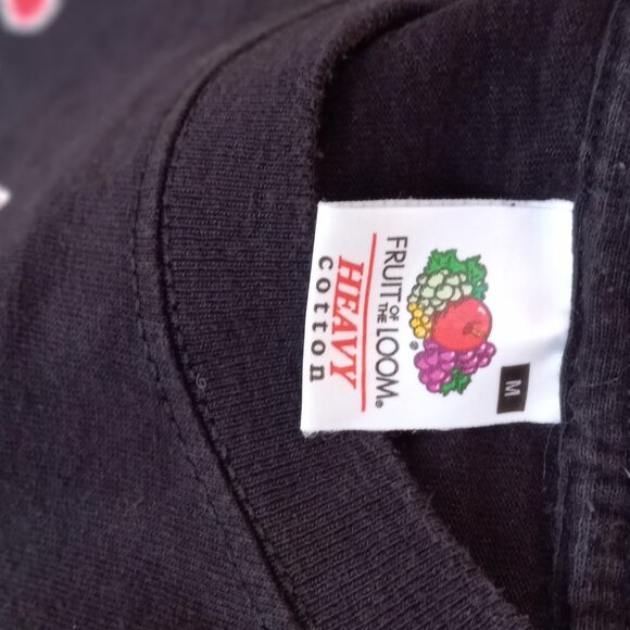 Slipknot, We Won't Die 624715380. Black T-shirt, with Crew neck and short sleeves, Pinted on Hanes Heavy Cotton Sized Medium (M). Actual approximate measurements are pit-to-pit 19". waist side to side 19", length of garment from nape to tip 26.5". Near black ground color. 100% Cotton Made in Morocco.