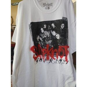 This is a new and excellent Slipknot men's 2XL concert tour 2021 Knotfest tee shirt. The shirt features a solid white color with a crew neck and short sleeves, made of cotton knit fabric. It has a logo accent, graphic print, and is officially licensed, making it a limited edition piece perfect for fans of heavy metal and rock music. With a regular fit and tagless design, this moisture-wicking and breathable shirt is suitable for all seasons and is easy to care for with machine washable instructions. Perfect for any Slipknot fan looking to show off their favorite band in style.