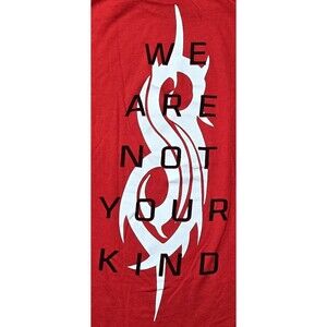 Condition: Good pre-owned Bravado 2019, Slipknot WANYK, We Are Not Your Kind. There are a few areas of stitching unraveled at bottom hem, as shown in pictures. Paint has cracking. Double Sided. Red Mens XL. Please view pictures closely for best description.
