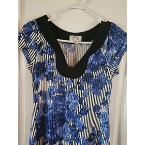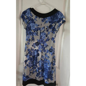 Slip-on Blue and White Floral & Stripe Slip on Dress