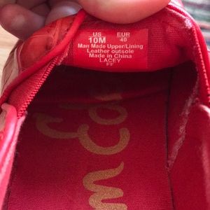 Bright red-orange snake skin patterned slip ons. I’ve only worn these shoes a few times and they are still in great condition.