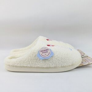 Fleece uppers with strawberry cosmopolitan embroidered appliques. Fleece lined. Memory foam midsole. Synthetic outsole. Slip-on style. Size: L (9/10) - Large (9/10) Color: Ivory (Red, Pink, White, Blue embroidery) NEW WITH TAG! @momisnuttz