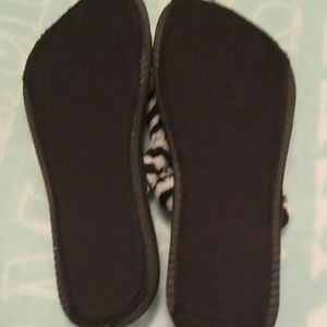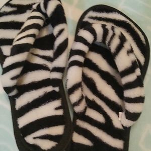 Zebra print slippers no name but adorable they're a size 5 and very comfortable