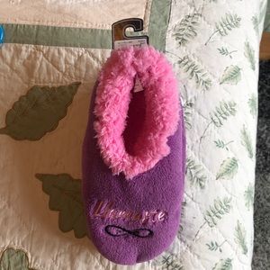 Pink and purple fuzzy lama slippers. Band new with tags. Six 7/8 women’s.