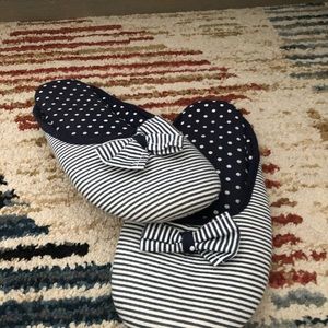 Stopped and poka dot with bow tie, slightly used (1 or 2 times) slippers navy blue and white
