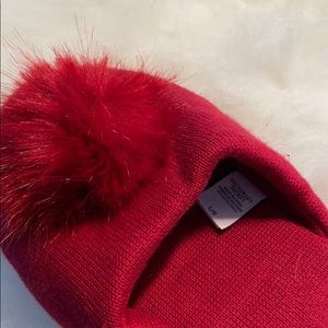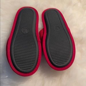 Victoria Secret red slip on slippers with faux red poof and heart detail. Never worn