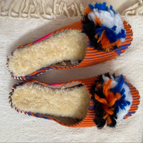 Lightweight folk-inspired slippers lined in cotton and fleece. Feminine and fun.