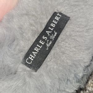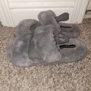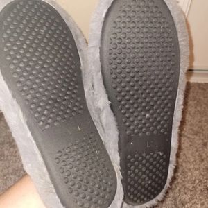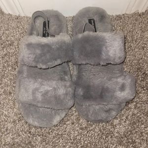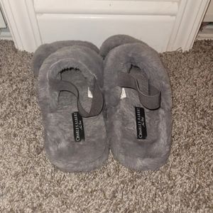 Charles Albert gray fuzzy slipper slides. Size large.