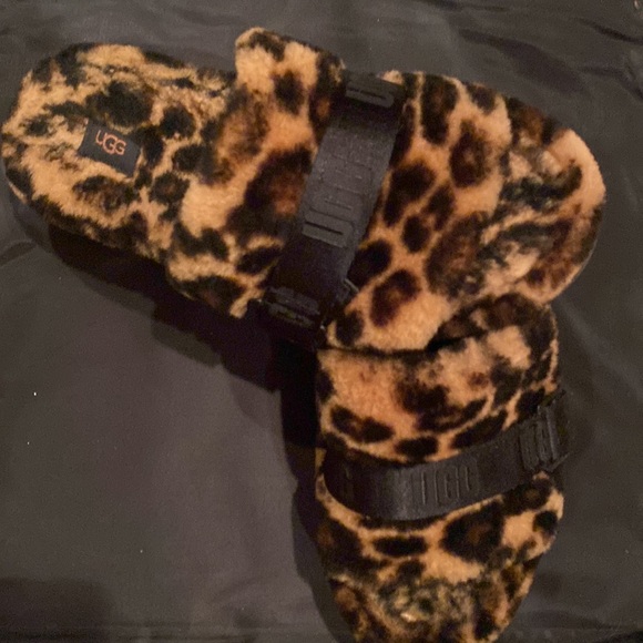 UGG Leopard lounge slippers. These run big but very sexy. Only worn a few times but they are little platforms and just too wide . Great Ugg lounge shoe it runs a little big good condition with little fur loss on the heel that’s not noticeable…No box but will package well