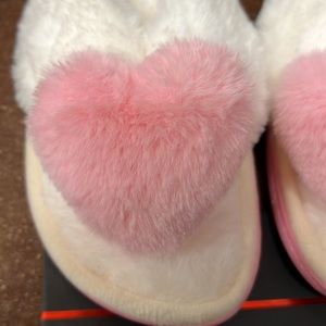 Fuzzy thong slippers with pink heart