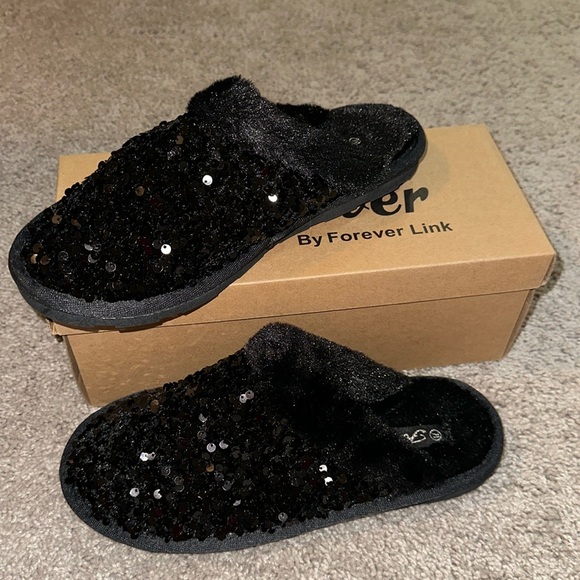 I bought these from my boutique and I never wear them. I have way too many slippers. These are brand new inbox super cute and very comfortable. They have fur in the inside and they have sequin on them.